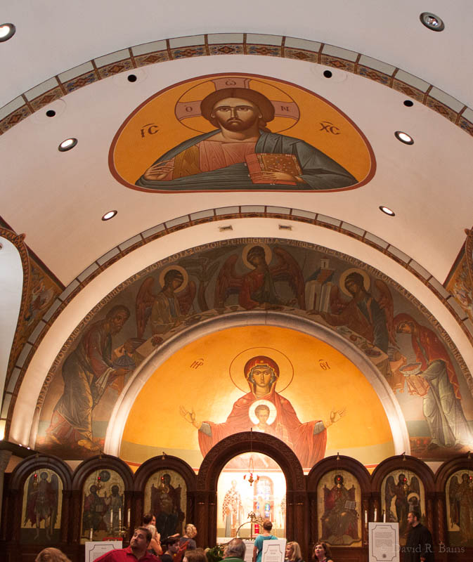 In connection to worship-related activities, music is a prominent practice in Eastern Orthodoxy. Frederica Matthews-Green, author of a book concerning ancient Christian Orthodoxy, stated, “About 75 percent of the service is congregational singing” (1999). Also, with respect to Orthodox music, its form does not include instruments–with the exception of an organ in some churches. However, Holy Trinity Holy Cross Greek Orthodox Cathedral does not have an organ itself. Congregational singing is, according to Matthews-Green, a “constant” and “overwhelming” form of worship, similar to a minimal level of religious, unanimous ecstasy. Though there are varying styles of music in worship (“from very Oriental-sounding solo chant in an Arabic church to more western-sounding four-part harmony in a Russian church” (1999)), the liturgy can be viewed as one continuous song invoking variation and diversity in one unified, harmonious melody. Holy Trinity -Holy Cross itself uses mostly solo chants from either the priest or someone reading during the service.