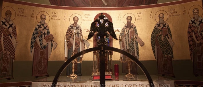 Inside, however, it reflects centuries of Orthodox tradition shaped by the sixth-century Hagia Sophia in Constantinople and other Orthodox cathedrals. Like them, it is divided into three parts: narthex, nave, and sanctuary. Also like them, it is shaped like a cross. Holy Trinity – Holy Cross, however, does not have a central dome. The roof of the nave extends through the crossing following the style of early Christian basilicas.