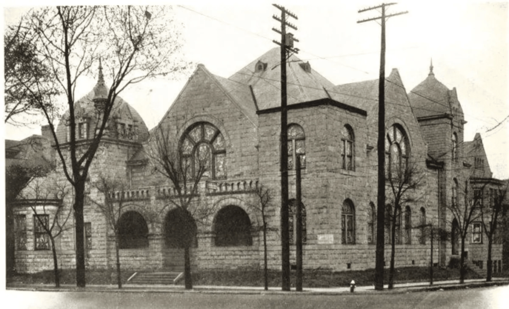 This new building marked an architectural change in First Baptist’s history, it was built in a neo-traditionalist colonial revival style. The previous building had been built in a Richardsonian Romanesque style that featured rounded towers and simple arches and windows. Even though the architectural style significantly changed when First Baptist Church moved downtown, the stained glass window that was preserved and placed in the new building provides a sense of continuation with First Baptist Church’s past in downtown Birmingham.