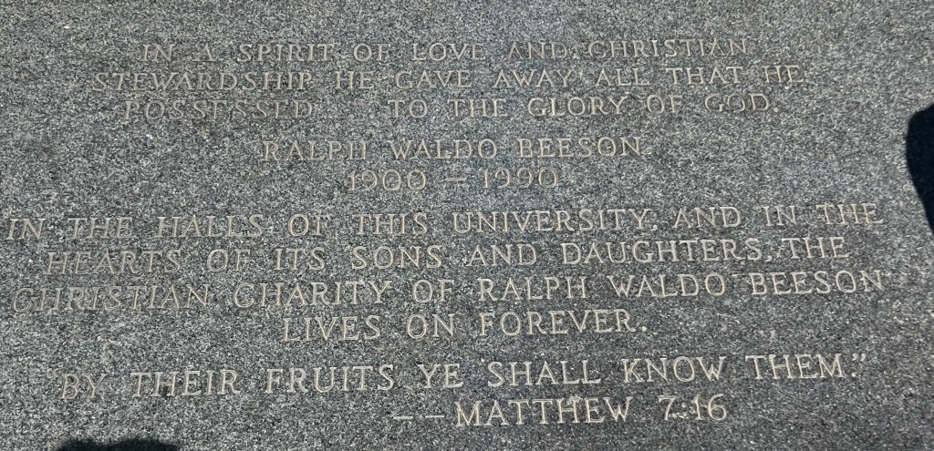 In conclusion Ralph Waldo Beeson shows the importance of philanthropy and giving back. He shows Samford students what they should do to live a life of service and philanthropy by showing how the lord calls us to do so. The university hopes to encourage students, faculty, and all those who come to the university and see his statue to be reminded of the importance of philanthropy.