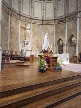 To be honest, the one thing I feel could be potentially problematic about this community’s worship comes not from the church itself, but from my own personal convictions regarding the Christian faith. As I set this up, I don’t want to be misheard–-I recognize the importance of Mary and the virgin birth! I recognize and honor Mary as the chosen Mother of Christ, purveyor and bearer the Messiah, and what a miraculous gift we have received through her. However, my solid foundation is the finished work of Jesus– the gospel message. Lucky for me, my parents continuously worked to instill the truth in me that “Jesus loves me, and there is nowhere I can go to separate me from His love.” I was encouraged through my Protestant upbringing that I had access to direct communication with the divine at any time. This is something that it seems to me many Catholics are not completely “bought-in” on. In my view Catholics tend to regard Mary as of similar importance and value as her son Jesus.