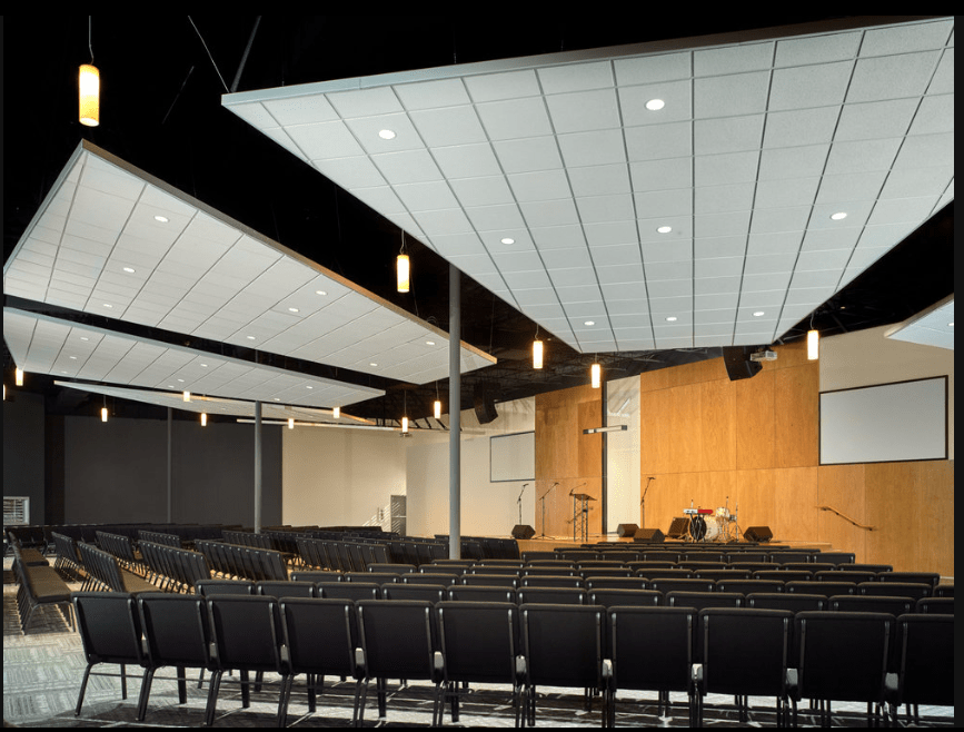 The congregation sits in chairs that can be moved, not wooden pews. There are no racks for hymnals, instead there are screens to project words and images. The platform is very simple. There are no chairs to sit on it, there is only one stand to hold a speaker’s notes. Nothing hides any part of the leaders’ bodies. Futhermore it appears that there is no communion table or baptismal pool in this Baptist church.