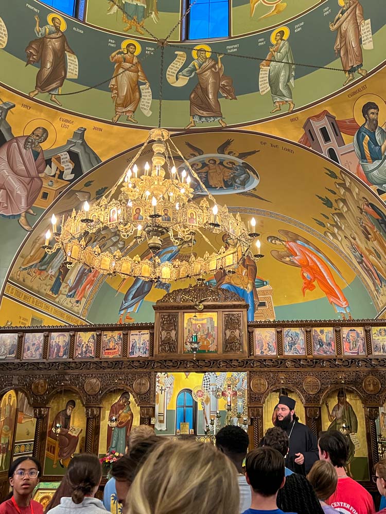 The total environment of St. Symeon, and other Orthodox churches, is crafted to convey to worshipers that the worship they offer here is part of the worship in heaven. As hymn that is sung before the prayers of the eucharistic rite states: