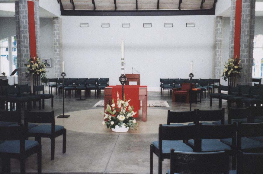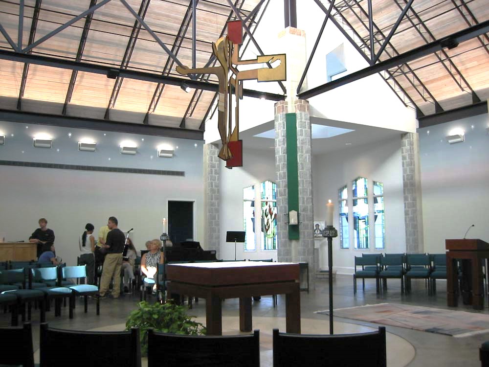The church was dedicated in 1991 under the leadership of Fr. Frank Muscolino. Like, Yeilding Chapel at Birmingham-Southern College, the altar is located in the center of the church and originally, worshipers surrounded it on all sides. Thus, in every act of prayer and worship in the church, all worshipers saw not only the altar, the priest, and images of Christ, but also faces of their fellow worshipers. The congregation itself was an important centring focus and symbol. Like many churches, especially innovative ones, this church has seen alterations over the years.