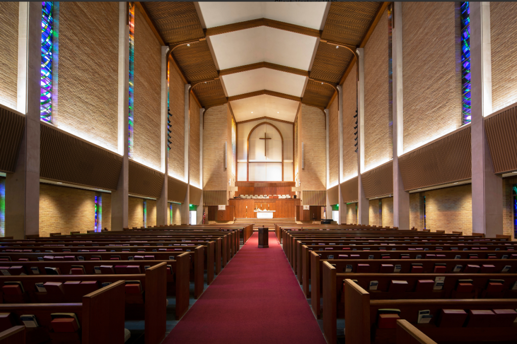 In renovations, other churches, such as All Saints’ Episcopal and South Highland Presbyterian Church placed the choir behind the communion table of a divided chancel, but not highly elevated as at IPC and Vestavia Hills Methodist.